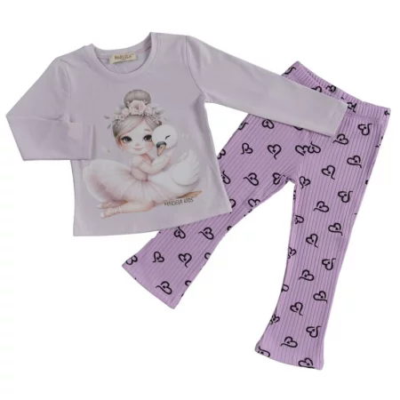 Памучна, мека и приятна детска пижама за момичета лека вата от две части: памучна детска блузка с дълъг ръкав, изпъстрена със сладка и цветна картинка на любими герои от популярното анимационно филмче Butterbean's Cafe, съчетана с памучна детска долница с ластик в светлорозово. ...