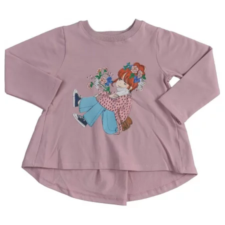 Памучна и приятна детска пижама за момичета от две части: памучна детска блузка с дълъг ръкав в цвят екрю, изпъстрена със сладка и цветна картинка, с ластик на ръкавите, съчетана с едноцветна, изчистена памучна детска долница с ластик в лилаво. Удобен и практичен модел ...
