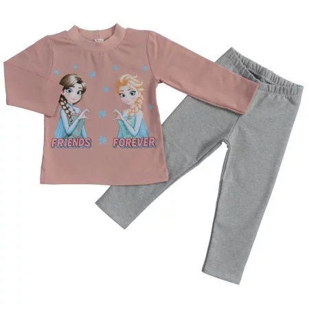 Памучна и приятна детска пижама за момичета от две части: памучна детска блузка с дълъг ръкав и с закачливи къдрички, в бяло и светлорозово, изпъстрена със сладка и цветна картинка на любимия герой Стич от популярното анимационно филмче Лило и Стич, съчетана с ...