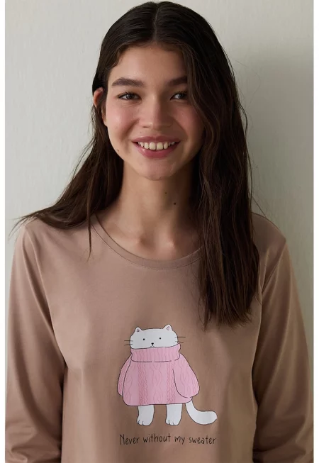 Характеристики Тип: пижама Цвят: праскова Материал: памук Принт: без принт Кройка: стандартна Ръкави: маншети Дължина ръкав: дълъг ръкав Талия: средновисока Дължина панталон: дълъг Детайли: еластична талия - качулка - цепка с връзка Закопчаване: без закопчаване Състав ...