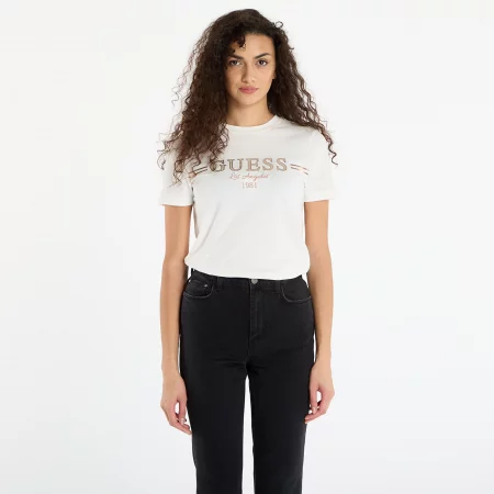 Характеристики Цвят: слонова кост - тъмновиолетов Принт: без принт Материал: памук Кройка: стандартна Модел: обло Дължина ръкав: къс ръкав Състав Външна част: 100% памук Информация за модел Моделът е облечен с размер S. Размер на модела: 177 cm височина - 86 cm Гръдна обиколка ...