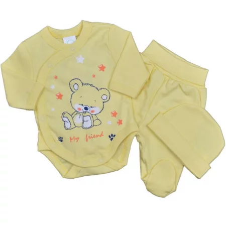 Симпатично и меко памучно бебешко боди с дълъг ръкав и копче на рамото за по-лесно обличане, в жълто, със сладка и симпатична предна част. Моделчето е изработено от качествена и приятна памучна материя за малки бебоци, лесно за съчетаване с различни цветове долнички ...