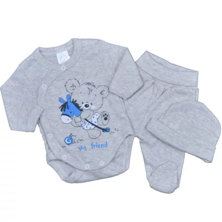 Памучно бебешко боди с дълъг ръкав и предно закопчаване, в цвят екрю, със сладка и симпатична картинка. Моделчето е изработено от качествена и приятна памучна материя за малки бебоци, лесно за съчетаване с различни цветове долнички, ританки и панталончета, удобно и ...