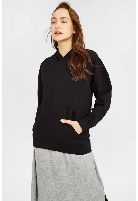 Характеристики Тип продукт: суитшър Цвят: черен Принт: лого Материал: памук Джобове: един тип кенгуру Дължина ръкав: дълъг ръкав Детайли: връзка за регулиране Състав Външна част: 100% памук