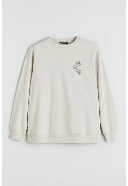 Характеристики Тип: суитшърт Цвят: мръснобял Принт: без принт - фотопринт Кройка: свободна Стил: ежедневен Материал: памук Дължина ръкав: дълъг ръкав Закопчаване: без закопчаване Състав Външна част: 100% памук