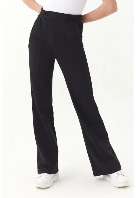 Характеристики Цвят: черен Стил: ежедневен Материал: полиестер - полиуретан Принт: без принт Кройка: разкроена Дължина: дълъг Талия: средновисока Детайли: връзка на талията Закопчаване: без закопчаване Състав Външна част: 55% полиестер - 45% полиуретан
