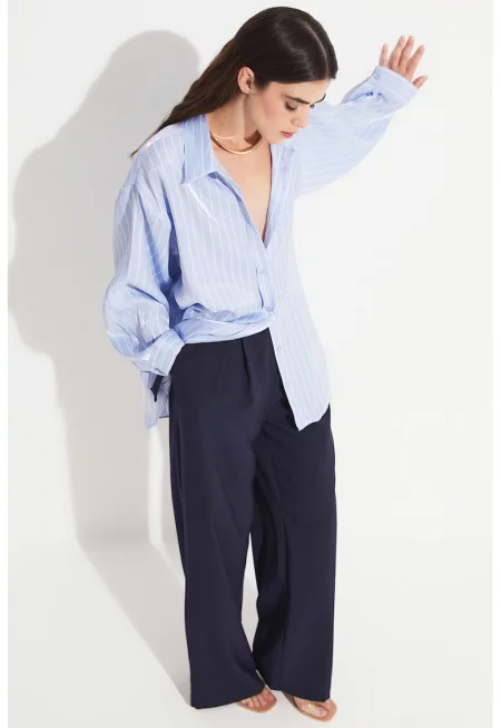 Характеристики Цвят: светло сив Стил: ежедневен Материал: лиосел Принт: без принт Кройка: широк крачол Дължина: дълъг Талия: висока Закопчаване: цип Състав Външна част: 100% лиосел tencel™ Информация за модел Моделът е облечен с размер S-L30. Размер на модела: 174 cm височина - 84 cm ...