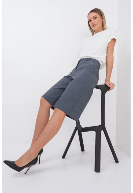 Широк къс панталон с вълна - Сив меланж