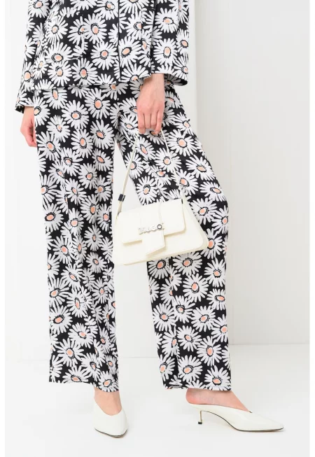 Флорален панталон с широк крачол - Бял/Черен/Праскова