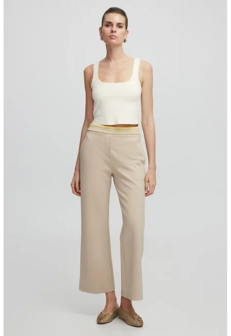 Характеристики Цвят: светло бежово Стил: елегантен Материал: памук Принт: без принт Кройка: конусовидна Дължина: над глезена Талия: висока Джобове: 2 странични - 2 обшити Закопчаване: цип Състав Външна част: външна част: 98% памук - 2% еластан