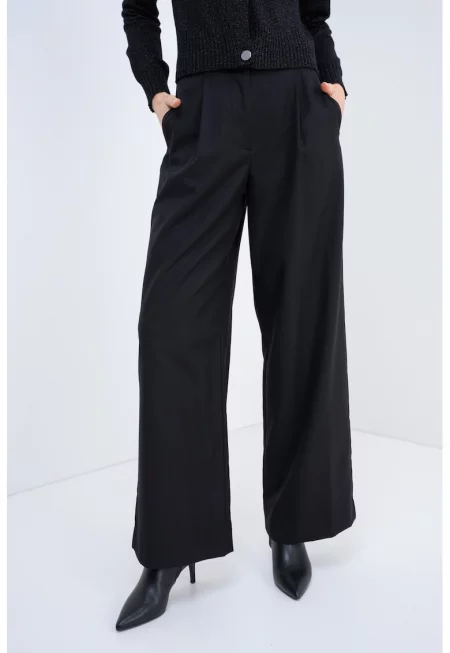 Характеристики Цвят: черен Стил: ежедневен Материал: памук - еластан - полиамид Принт: без принт Кройка: конусовидна Дължина: дълъг Талия: висока Закопчаване: цип Състав Външна част: памук - полиамид - вискоза