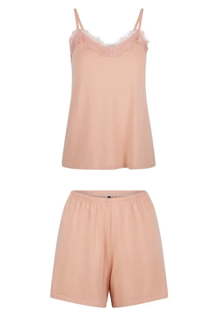 Характеристики Тип продукт: комплект - пижама Цвят: крем Материал: вискоза Принт: текст Деколте: кръгло Дължина ръкав: дълъг ръкав Дължина панталон: къс Състав Външна част: 92% вискоза - 8% еластан