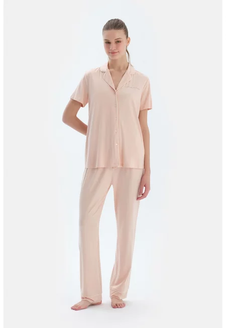 Характеристики Тип продукт: пижама Цвят: бял - черен Материал: вискоза Принт: животински принт Яка: ревери с цепка Кройка: стандартна Дължина ръкав: къс ръкав Талия: средновисока Дължина панталон: дълъг Детайли: еластична талия Закопчаване: копчета Състав Външна част: ...