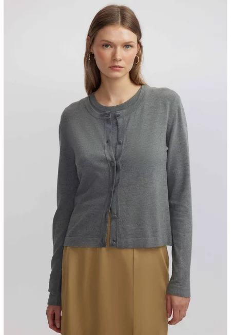 Характеристики Тип продукт: жилетка Цвят: камел Принт: без принт Стил: ежедневен Материал: полиамид - акрил Модел: v-образно деколте Закопчаване: копчета Дължина ръкав: дълъг ръкав Състав Външна част: 71% акрил - 24% полиамид - 5% еластан