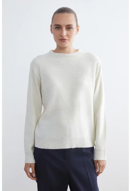Пуловер с овално деколте и бляскави детайли