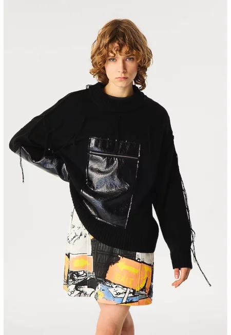 Свободен пуловер с вълна - Черен