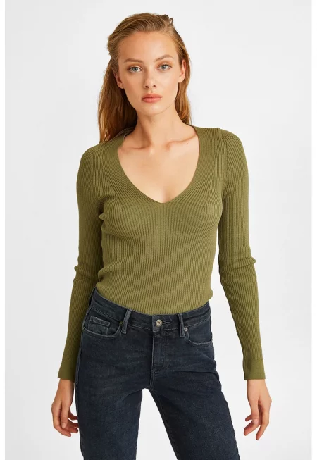Пуловер с овално деколте