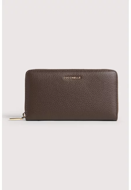 Характеристики Цвят: кафяв Материал: екологична кожа Принт: лого Джобове: отделения за карти - отделения за банкноти (един с цип) Закопчаване: цип Състав Външна част: 70% полихлорид - 30% полиуретан Подплата: 100% полиестер Размери Размери (см): 10.5x19.5x3