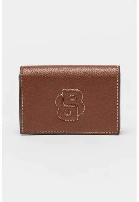 Характеристики Цвят: кафяв Материал: екологична кожа Принт: без принт Джобове: джоб за лична карта - един за монети с цип - 3 отделения за карти - отделение за банкноти Закопчаване: капси Състав Външна част: полиуретан Размери Размери (см): 10x12x2.5