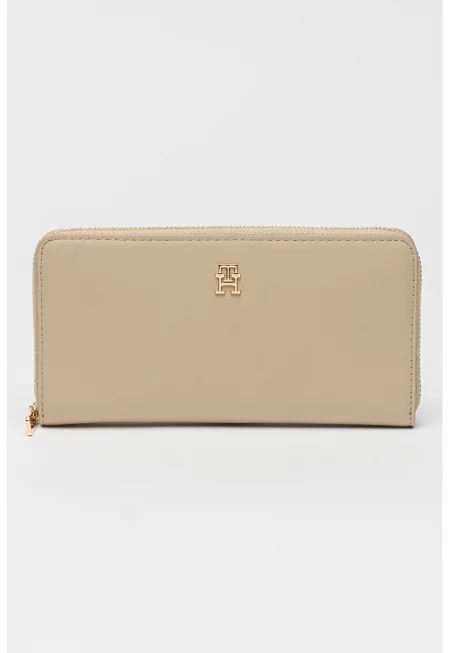 Характеристики Цвят: кафяв Материал: екологична кожа Принт: с принт Джобове: отделения за карти - джоб с цип за монети - отделения за банкноти Детайли: каишка за китката - монограм Закопчаване: цип Състав Външна част: 80% pvc - 18.5% полиестер - 1.5% полиуретан Подплата: 100% ...