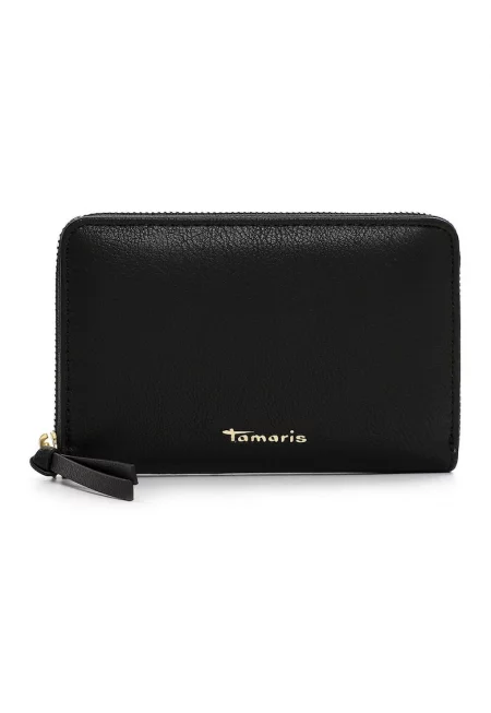 Характеристики Цвят: черен Материал: екологична кожа Принт: без принт Джобове: отделения за карти - за лична карта - отделение за банкноти Закопчаване: капси Състав Външна част: 97% памук - 3% спандекс Размери Размери (см): 19 x 10 x 3 cm