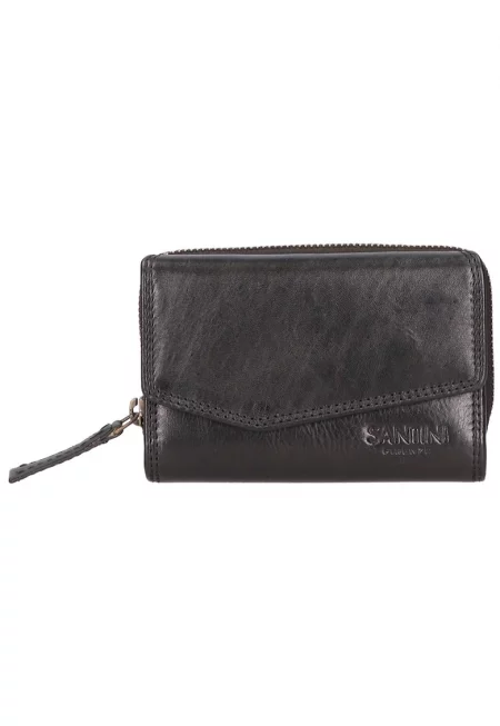 Характеристики Цвят: черен Материал: екологична кожа Принт: без принт Джобове: отделения за карти - джоб с цип за монети Закопчаване: капси Състав Външна част: 100% полиестер с полиуретаново покритие Размери Размери (см): 8 x 11 x 2 cm