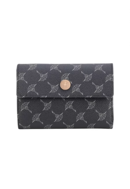 Характеристики Цвят: черен Материал: еко кожа Принт: без принт Джобове: отделения за карти - отделение за монети - отделение за банкноти Детайли: декоративна тока - лого Закопчаване: капси Състав Външна част: 100% полиуретан Размери Размери (см): 10x19x2.5