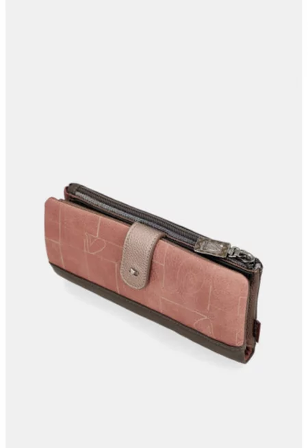 Характеристики Цвят: тъмнокафяв Материал: екологична кожа Принт: с принт Джобове: вътрешни с цип - отделения за карти Детайли: лого Закопчаване: капси Състав Външна част: 80% поливинилхлорид - 18.5% полиестер - 1.5% полиуретан Подплата: 100% полиестер Размери Размери (см): 8x19x3