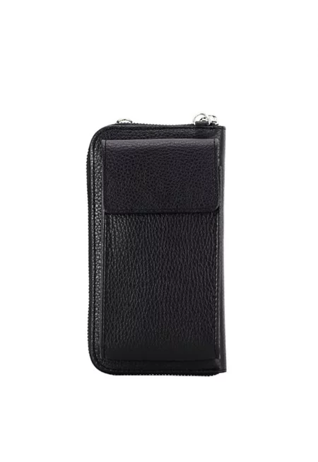 Характеристики Цвят: черен Материал: eстествена кожа Принт: с принт Джобове: 3 отделения Детайли: релеф Закопчаване: цип Състав Външна част: кожа Размери Размери (см): 12x20x10