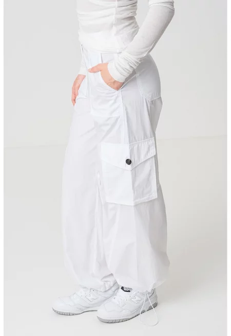 Характеристики Цвят: бял Стил: ежедневен Материал: памук Принт: без принт Кройка: права Дължина: дълъг Талия: средновисока Джобове: 5 Закопчаване: цип Състав Външна част: 98% памук - 2% спандекс
