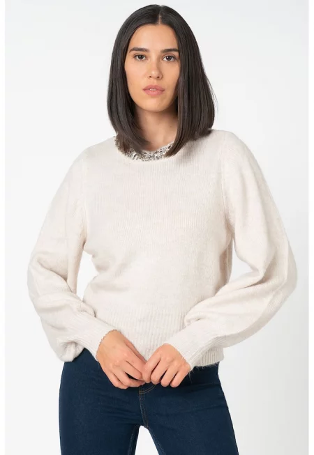 Характеристики Тип продукт: пуловер Цвят: camel Материал: вълна - найлон Модел: обло Дължина ръкав: дълъг ръкав Детайли: рипсени маншети и подгъв Състав Външна част: 50% найлон - 27% акрил - 20% алпака - 3% еластан Информация за модел Моделът е облечен с размер S. Размер на модела: ...