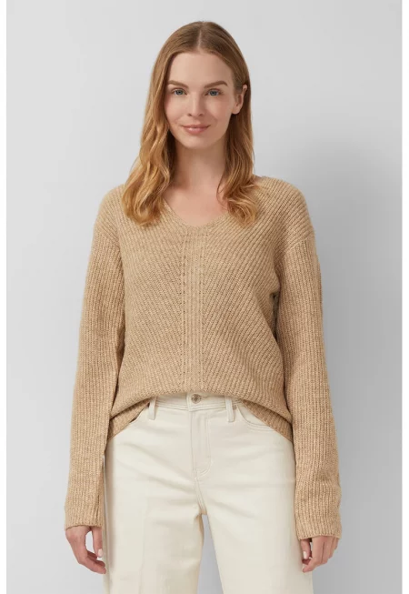 Характеристики Тип продукт: пуловер Цвят: camel Принт: геометричен Стил: ежедневен Материал: полиестер - вискоза Модел: овален Закопчаване: без закопчаване Дължина ръкав: дълъг ръкав Тип ръкав: тип реглан Детайли: рипсени маншети и подгъв Състав Външна част: 48% вискоза - 29% ...