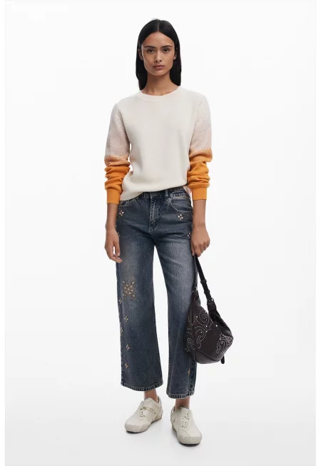 Характеристики Тип продукт: пуловер Цвят: мръснобял - бронз Принт: райе Материал: полиестер - вълна - акрил - устойчиво Модел: овален Кройка: свободна Закопчаване: без закопчаване Дължина ръкав: дълъг ръкав Тип ръкав: свободнопадащ Детайли: бляскави елементи Състав ...