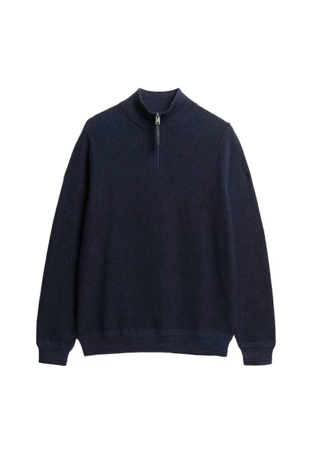 Пуловер с къс цип - Тъмносин