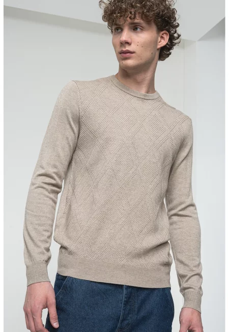 Характеристики Тип продукт: пуловер Цвят: мръснобял Принт: без принт Материал: полиестер Модел: обло Деколте: обло Дължина ръкав: дълъг ръкав Тип ръкав: паднали Състав Външна част: 43% вискоза - 34% полиамид - 23% полиестер