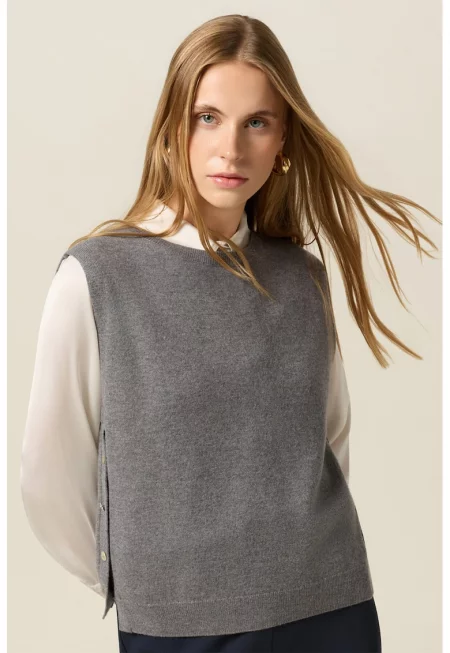 Характеристики Тип продукт: пуловер Цвят: светлосин Принт: без принт Материал: полиестер - акрил Модел: обло Кройка: стандартна Закопчаване: без закопчаване Деколте: рипс Дължина ръкав: дълъг ръкав Тип ръкав: паднали Състав Външна част: 55% рециклиран полиестер - 30% ...