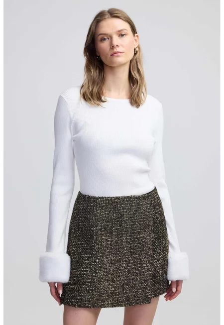 Пуловер с отделящ се еко пух на маншетите - Бял