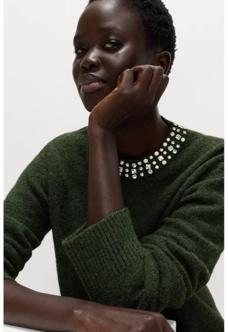 Характеристики Цвят: сив меланж Принт: без принт Материал: вълна - акрил Кройка: стандартна Закопчаване: без закопчаване Модел: овален Деколте: кръгло Дължина ръкав: дълъг ръкав Състав Външна част: 50% акрил - 50% вълна Информация за модел Моделът е облечен с размер M. ...