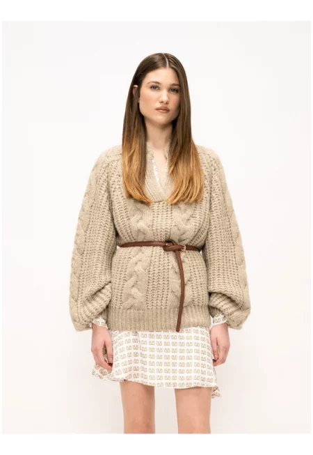 Характеристики Тип продукт: пуловер Цвят: сиво-кафяв Принт: без принт Стил: ежедневен Материал: синтетичен - плетен Модел: обло Кройка: стандартна Закопчаване: без закопчаване Дължина ръкав: дълъг ръкав Тип ръкав: бухнали Състав Външна част: 73% акрил - 24% полиамид - 3% ...