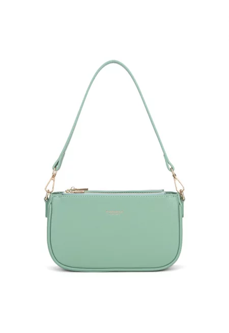 Характеристики Цвят: слонова кост Материал: екологична кожа Модел: ръчна чанта Стил: ежедневен Принт: лого Дръжка: отделяща се Отделения: едно - основно Цвят на метала: златист Закопчаване: капаче Състав Външна част: 100% полиуертан Размери Размери (см): 16x23x7
