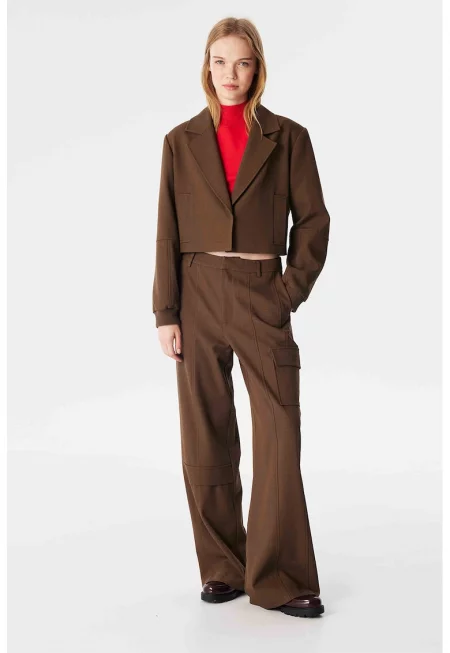 Характеристики Цвят: черен - кафяв Стил: елегантен Материал: полиестер Принт: животински принт Кройка: широк крачол Дължина: дълъг Талия: висока Закопчаване: без закопчаване Състав Външна част: 100% полиестер Информация за модел Моделът е облечен с размер S/38 IT. Размер на ...