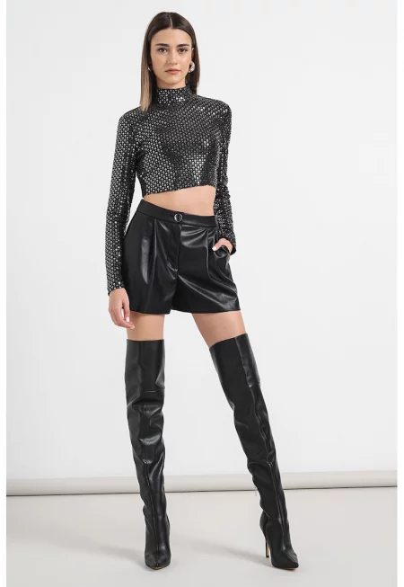 Къс панталон от еко кожа - Черен