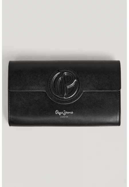 Характеристики Цвят: черен Материал: екологична кожа Принт: без принт Джобове: отделения за карти - отделения за банкноти - отделение за монети Детайли: релефен ефект - метално лого Закопчаване: капси