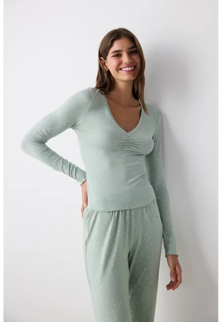 Характеристики Тип: нощница Цвят: слонова кост - бледо зелено - черен меланж Материал: сатен - устойчив Принт: флорален Деколте: шпиц Кройка: стандартна Дължина ръкав: без ръкав Състав Външна част: 90% полиестер - 10% еластан