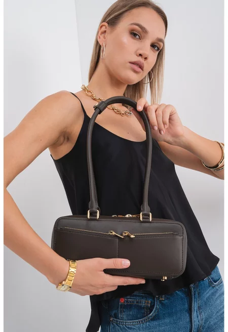 Характеристики Цвят: бледо розово Материал: екологична кожа Модел: чанта Стил: ежедневен Принт: лого Презрамки: 2 Джобове: вътрешни с цип Отделения: 1 Цвят на метала: златист Закопчаване: цип Състав Външна част: 100% полиуертан Подплата: 100% полиуретан Размери Размери (см): ...