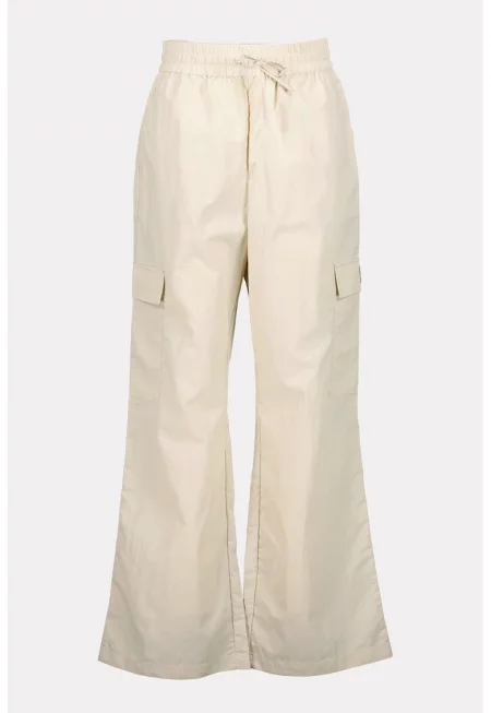 Общи характеристики Тип продукт: панталон Тип: дълги Стил: средна талия Цвят: слонова кост Материал: полиестер - еластан Технология материал: дишаща материя Принт: без принт Сезон: пролет-лято - есен-зима Спорт: фитнес Детайли: джобове встрани - еластична талия с връзка за ...