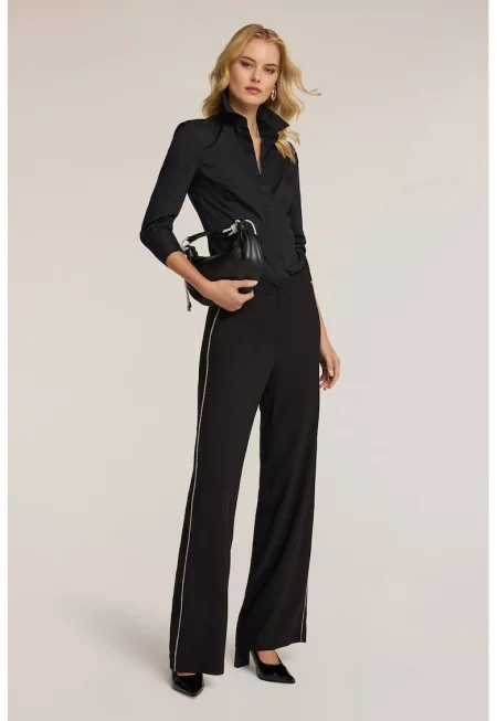 Характеристики Цвят: тъмносин Стил: ежедневен Материал: полиестер - модал Принт: без принт Кройка: стандартна Дължина: над глезена Талия: средновисока Детайли: панделка - еластична талия отзад Закопчаване: без закопчаване Състав Външна част: 75% модал - 25% полиестер