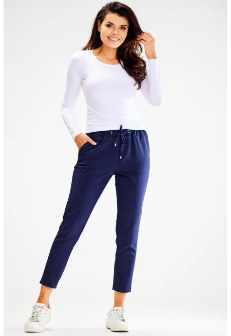 Характеристики Цвят: тъмносин Стил: елегантен Материал: синтетичен Принт: без принт Кройка: права Дължина: над глезена Талия: средновисока Джобове: декоративни отзад - скосени отпред Закопчаване: цип Състав Външна част: 97% полиестер - 3% еластан Подплата: 100% полиестер
