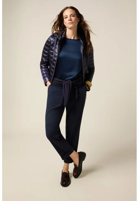Характеристики Цвят: виолетов Стил: елегантен Материал: памук - еластан - полиамид Принт: без принт Кройка: конусовидна Дължина: над глезена Талия: висока Закопчаване: цип Състав Външна част: 50% памук - 47% полиамид - 3% еластан
