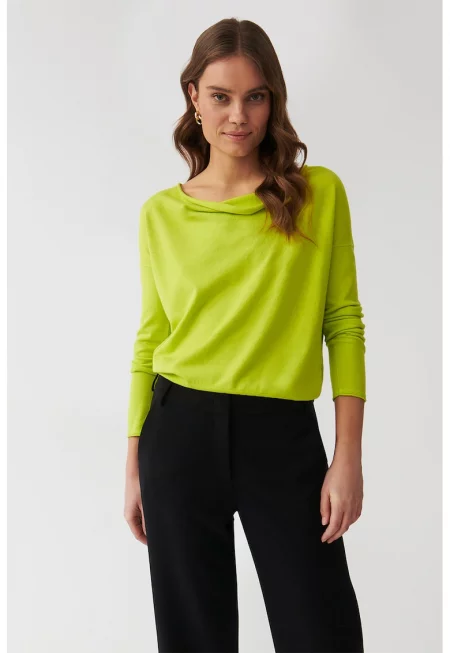 Фино плетен пуловер Livo с ръкави реглан - Лайм зелено